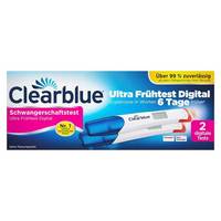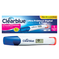 - Das Clearblue® Schwangerschaftstest Ultra Frühtest Digital kombiniert eine ultrasensitive Früherkennung des Schwangerschaftshormons mit eindeutigen digitalen Ergebnissen in Worten. Der empfindlichste digitale Schwangerschaftstest von Clearblue® kann bis zu sechs Tage vor dem Ausbleiben der Periode angewendet werden.1