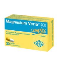 Eine optimale Versorgung mit Magnesium ist sehr wichtig, denn es trägt unter anderem zu einer normalen Muskelfunktion, einer normalen Funktion des Nervensystems und zu einem normalen Energiestoffwechsel bei. Magnesium leistet auch einen Beitrag zur Verringerung von Müdigkeit und Erschöpfung. Dank der hohen Dosierung von 400 mg Magnesium ist Magnesium Verla® 400 bestens geeignet, um Sie im Alltag und in herausfordernden Phasen mit Magnesium zu versorgen – bereits 1 Kapsel pro Tag ist ausreichend. Die geschmacksneutralen Kapseln auf pflanzlicher Cellulose-Basis sind ideal für die tägliche Einnahme geeignet. In Magnesium Verla® 400 wird Magnesiumoxid mit einem möglichst hohen Anteil an organischen Magnesiumcitrat kombiniert.